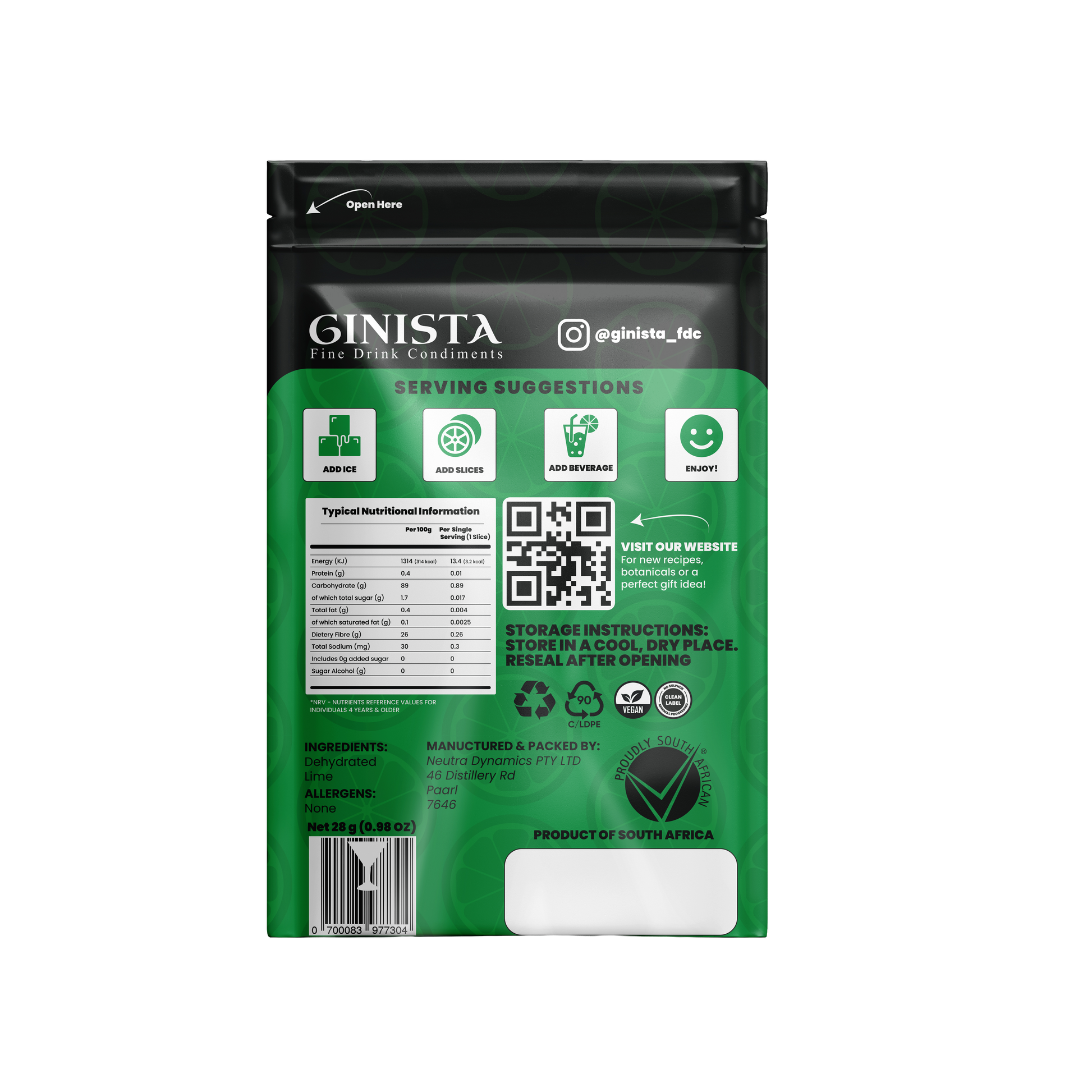 Ginista’s Dried Lime Wheels are a bar essential crafted for purity and performance. These slices carry an unmistakable tang, adding brightness and balance to both classic and modern cocktails. Dried at peak freshness, each slice delivers an intense citrus note and consistent size — ideal for professional bars and home mixologists alike.